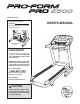 BEFORE YOU BEGIN Thank you for selecting the revolutionary PROFORM® PRO 2500 treadmill. The PRO 2500 treadmill offers an impressive selection of features designed to make your workouts at home more enjoyable and effective. And when youʼre not exercising, the unique treadmill can be folded up, requiring less than half the floor space of other treadmills. ing this manual, please see the front cover of this manual.