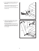 17. Attach the upper end of the Storage Latch (65) to the Frame (64) with a 3/8" x 1 3/4" Bolt (7) and a 3/8" Nut (13). Note: It may be necessary to move the Frame back and forth to align the Storage Latch with the Base (not shown). 17 64 13 18. Lower the Frame (64) (see HOW TO LOWER THE TREADMILL FOR USE on page 29).