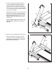 24. Inspect and properly tighten all parts of the treadmill regularly. 20. Never leave the treadmill unattended while it is running. Always remove the key, unplug the power cord, and press the power switch into the off position when the treadmill is not in use. (See the drawing on page 5 for the location of the power switch.) 25. 21. Do not attempt to raise, lower, or move the treadmill until it is properly assembled. (See ASSEMBLY on page 7, and HOW TO FOLD AND MOVE THE TREADMILL on page 29.