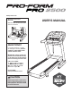 BEFORE YOU BEGIN Thank you for selecting the revolutionary PROFORM® PRO 2500 treadmill. The PRO 2500 treadmill offers an impressive selection of features designed to make your workouts at home more enjoyable and effective. And when you’re not exercising, the unique treadmill can be folded up, requiring less than half the floor space of other treadmills. reading this manual, please see the front cover of this manual.