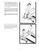 20. Never leave the treadmill unattended while it is running. Always remove the key, press the power switch into the off position (see the drawing on page 5 for the location of the power switch), and unplug the power cord when the treadmill is not in use. 25. 21. Do not attempt to move the treadmill until it is properly assembled. (See ASSEMBLY on page 7, and HOW TO FOLD AND MOVE THE TREADMILL on page 29.) You must be able to safely lift 45 lbs. (20 kg) to raise, lower, or move the treadmill.