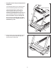 5. Plaats het Bedieningspaneel (103) op de handleuningsmodule. Zorg dat u de bedrading niet beklemd. 5 Bevestig het Bedieningspaneel (103) op de handleuningsmodule met twee 3/8" x 1 3/4" Hechtbouten (3) en twee 3/8" Sterringen (4). Begin beide Hechtbouten voordat u ze echt vast draait. 103 Bedieningspaneel 3 4 3 4 6. Zorg ervoor dat alle onderdelen vast zijn gedraaid voordat u de loopband gebruikt.