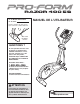 AVANT DE COMMENCER Merci d’avoir choisit l’appareil elliptique révolutionaire PROFORM® RAZOR 400 ES. The RAZOR 400 ES est équipé d’un large éventail de fonctionnalités conçues pour rendre vos entraînements chez vous plus efficaces et plus agréables. manuel, référez-vous à sa dernier page pour nous contacter. Pour que nous puissions mieux vous assister, notez le numéro du modèle et le numéro de série de l’appareil avant de nous appeler.