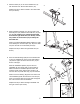 4. Attach a Pedal (31) to one of the Pedal Arms (12) with three #8 x 3/4Ó Round Head Screws (16). 4 31 Repeat this step to attach a Pedal to the other Pedal Arm (not shown). 12 16 5. Slide a Pedal Arm Spacer (41) onto the axle on the left Pulley Arm (34). Slide the left Pedal Arm (12) onto the axle. Be careful not to confuse the left Pedal Arm with the right Pedal Arm (not shown); look at the position of the Link Arm (10) to identify the left Pedal Arm.