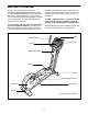 HOW TO USE THE ELLIPTICAL EXERCISER HOW TO FOLD AND UNFOLD THE ELLIPTICAL EXERCISER HOW TO MOVE THE ELLIPTICAL EXERCISER To move the elliptical exerciser, first fold it as described at the left. Next, stand in front of the elliptical exerciser and place one foot against the center of the front stabilizer. Pull the transport handle backward until the elliptical exerciser will roll on the front wheels. Carefully move the elliptical exerciser to the desired position, and then lower it.