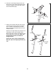4. Attach the Center Foot (40) to the Frame (1) with two M4 x 16mm Round Head Screws (92). 4 Then, return the elliptical exerciser to the upright position. 1 40 92 5. Tip: Avoid pinching the Wire Harnesses (64, 65) during this step. 5 While another person holds the Upright (10) near the Frame (1), connect the Upper Wire Harness (65) to the Lower Wire Harness (64). Then, insert the Upright (10) into the Frame (1). Attach the Upright with four M8 x 19mm Patch Screws (86) and four M8 Split Washers (97).