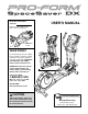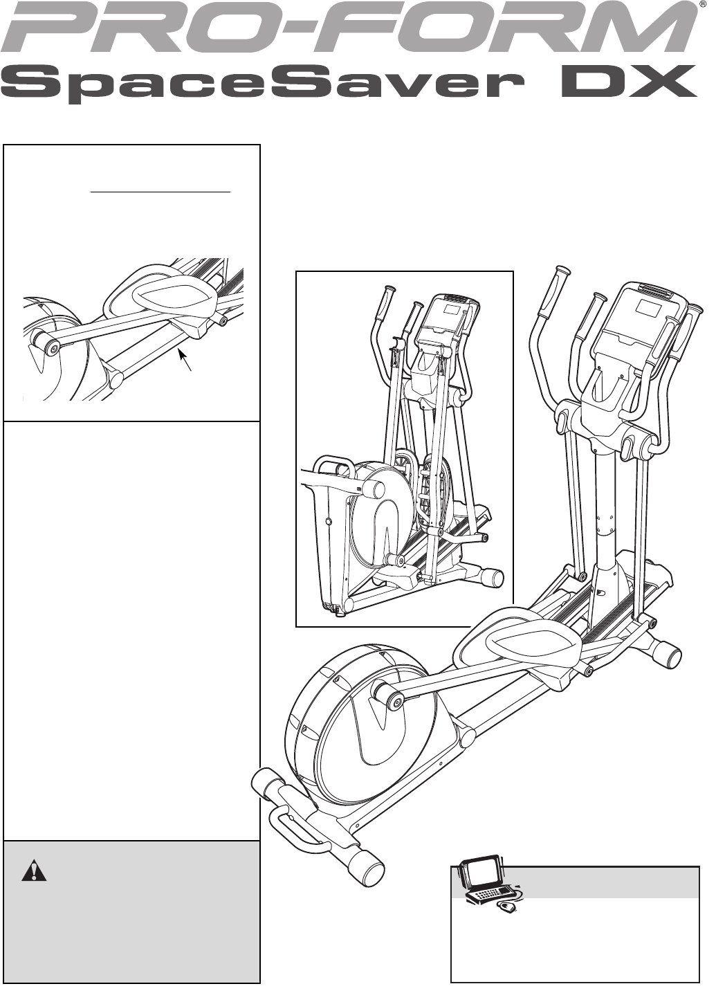 BEFORE YOU BEGIN Thank you for purchasing the revolutionary PROFORM® SPACESAVER DX elliptical exerciser. The SPACESAVER DX elliptical exerciser provides a wide array of features designed to make your workouts at home more effective and enjoyable—and when youʼre not exercising, the unique elliptical exerciser can be folded out of the way. product model number and serial number before contacting us. The model number and the location of the serial number decal are shown on the front cover of this manual.