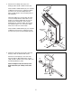 5. Insert the Roller (38) on the Left Pedal Arm (32) and the Roller on the Right Pedal Arm (33) into the sides of the Ramp (5). 5 97 Attach the Rear Ramp Cover (7) to the Ramp (5) with two M4 x 16mm Screws (97). 7 33 See the inset drawing. Lift the Pedal Arm Latch (41) on the Left Pedal Arm (32), and set the end of the Left Pedal Arm on the left Crank Bushing Sleeve (54). Release the Pedal Arm Latch, and make sure that the Left Pedal Arm is securely connected to the Crank Bushing Sleeve.
