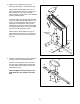 5. Insert the Roller (38) on the Left Pedal Arm (32) and the Roller on the Right Pedal Arm (33) into the sides of the Ramp (5). 5 97 7 Attach the Rear Ramp Cover (7) to the Ramp (5) with two M4 x 16mm Screws (97). 33 See the inset drawing. Lift the Pedal Arm Latch (41) on the Left Pedal Arm (32), and set the end of the Left Pedal Arm on the left Crank Bushing Sleeve (54). Release the Pedal Arm Latch, and make sure that the Left Pedal Arm is securely connected to the Crank Bushing Sleeve.