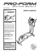 www.proform.com Model No. PFEL09807.0 Serial No. Write the serial number in the space above for reference. Serial Number Decal QUESTIONS? As a manufacturer, we are committed to providing complete customer satisfaction. If you have questions, or if parts are damaged or missing, DO NOT CONTACT THE STORE; please contact Customer Care. IMPORTANT: You must note the product model number and serial number (see the drawing above) before contacting us: 1-888-533-1333 CALL TOLL-FREE: Mon.–Fri. 6 a.m.–6 p.m.