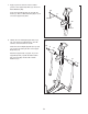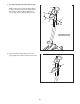 . While another person holds the Console (11) near the Upright (10), connect the console wire to the Wire Harness (64). Insert the excess wire into the Upright. 11 11 Tip: Avoid pinching the wires. Attach the Console (11) to the Upright (10) with four M4 x 16mm Screws (78). Console Wire 64 10 Avoid pinching the wires 12. Identify the Right Pedal (35), which is marked with an “R” sticker. Orient the Right Pedal and a Pedal Arm (32) as shown.