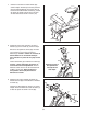 COMMENT UTILISER L’APPAREIL ELLIPTIQUE COMMENT DÉPLACER L’APPAREIL ELLIPTIQUE COMMENT FAIRE DE L’EXERCICE SUR L’APPAREIL ELLIPTIQUE Étant donné la taille et le poids importants de l’appareil elliptique, deux personnes sont nécessaires pour le déplacer. Placez-vous devant l’appareil elliptique, tenez le montant puis placez un pied contre une des roues avant. Tirez le montant et demandez à l’autre personne de soulever la base jusqu’à ce que l’appareil elliptique soit en mesure de rouler sur les roues avant.