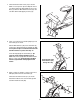 14. While a second person holds the Console (5) near the Upright (6), connect the console wire to the Wire Harness (48). Insert the excess wire downward into the Upright. 14 5 Tip: Avoid pinching the Wire Harness (48) during this step. Attach the Console (5) to the Upright (6) with four M4 x 16mm Self-tapping Screws (79). 48 6 Console Wire 79 Avoid pinching the Wire Harness (48) during this step 15. Apply a generous amount of grease to a Pedal Leg Axle (32).