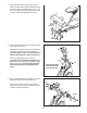 14. While a second person holds the Console (5) near the Upright (6), connect the console wire to the Wire Harness (48). Insert the excess wire downward into the Upright. 14 5 Tip: Avoid pinching the Wire Harness (48) during this step. Attach the Console (5) to the Upright (6) with four M4 x 16mm Self-tapping Screws (79). 48 6 Console Wire 79 Avoid pinching the Wire Harness (48) during this step 15. Apply a generous amount of grease to a Pedal Leg Axle (32).