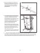 HOE DE LOOPBAND TE VERPLAATSEN 1. Houd de loopband met uw rechterhand vast zoals getoond. Trek de vergrendelingsknop naar links en houd deze vast. Soms is het nodig het onderstel naar voren te duwen terwijl u de knop naar links trekt. Draai het onderstel naar beneden totdat het voorbij de sluitpen is. Onderstel Sluitknop 2. Houdt de loopband met beide handen goed vast en laat de loopband op de vloer zakken.