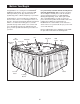 Jet Layout Diagram G M K D G G J I I I D G D B H B A F C E I B H L D B H I H I M A. The underwater light can be used for night operation (see USING THE CONTROLS on page 14). G. The four neck jets can be adjusted to spray soothing water on your neck. B. The ten air injectors create air bubbles that enhance the hydrotherapy experience. H. The eleven rotary jets provide a spinning massage. C. The volcano jet provides a soothing foot massage. I.