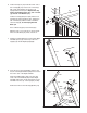 9. Attach the Right Handrail (104) and the Left Handrail (107) with six 5/16" x 1" Bolts (6) and four 5/16" Star Washers (13) as shown. Do not fully tighten the Bolts yet. 9 Slide the Handrail Caps (105) away from the Uprights (75, 80). Attach the lower end of each Handrail (104, 107) to the Uprights with a #10 x 3/4" Screw (5). 6 6 107 75 105 Orient the Handrail Caps (105) as shown. Secure a Handrail Cap to each Handrail (104, 107) with a #8 x 1/2" Screw (2). 13 2 6 13 104 80 5 105 5 10.
