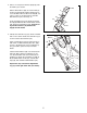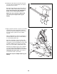 4. Perform the first strength exercise when prompted. 5. Continue the cross training program. When you have performed the recommended number of repetitions, the words START PEDALING will appear in the display. To continue the cross training program, step onto the elliptical exerciser and start pedaling. the pedals will automatically adjust to the resistance setting for the next segment.