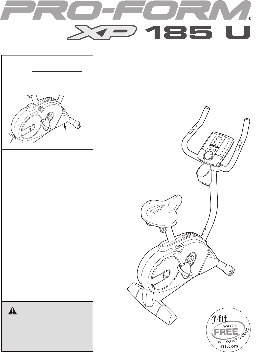BEFORE YOU BEGIN Thank you for selecting the PROFORM® XP 185 U exercise bike. Cycling is an effective exercise for increasing cardiovascular fitness, building endurance, and toning the body. The XP 185 U exercise bike provides an impressive selection of features designed to make your workouts at home more effective and enjoyable. after reading this manual, please see the back cover of this manual. To help us assist you, note the product model number and serial number before contacting us.