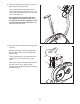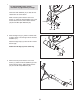 11. Identify the Right Pedal (26), which is marked with an “R.” Using an adjustable wrench, firmly tighten the Right Pedal clockwise into the right arm of the Crank (13). 11 13 Tighten the Left Pedal (not shown) counterclockwise into the left arm of the Crank. 26 Adjust the strap on the Right Pedal (26) to the desired position, and press the end of the strap onto the tab on the side of the Right Pedal. Adjust the strap on the Left Pedal (not shown) in the same way. Strap Tab 12.