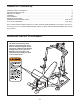 ASSEMBLY • Tighten all parts as you assemble them, unless instructed to do otherwise. Make Things Easier for Yourself Everything in this manual is designed to ensure that the weight bench can be assembled successfully by anyone. Most people find that by setting aside plenty of time, assembly will go smoothly. • For help identifying small parts, use the PART IDENTIFICATION CHART.