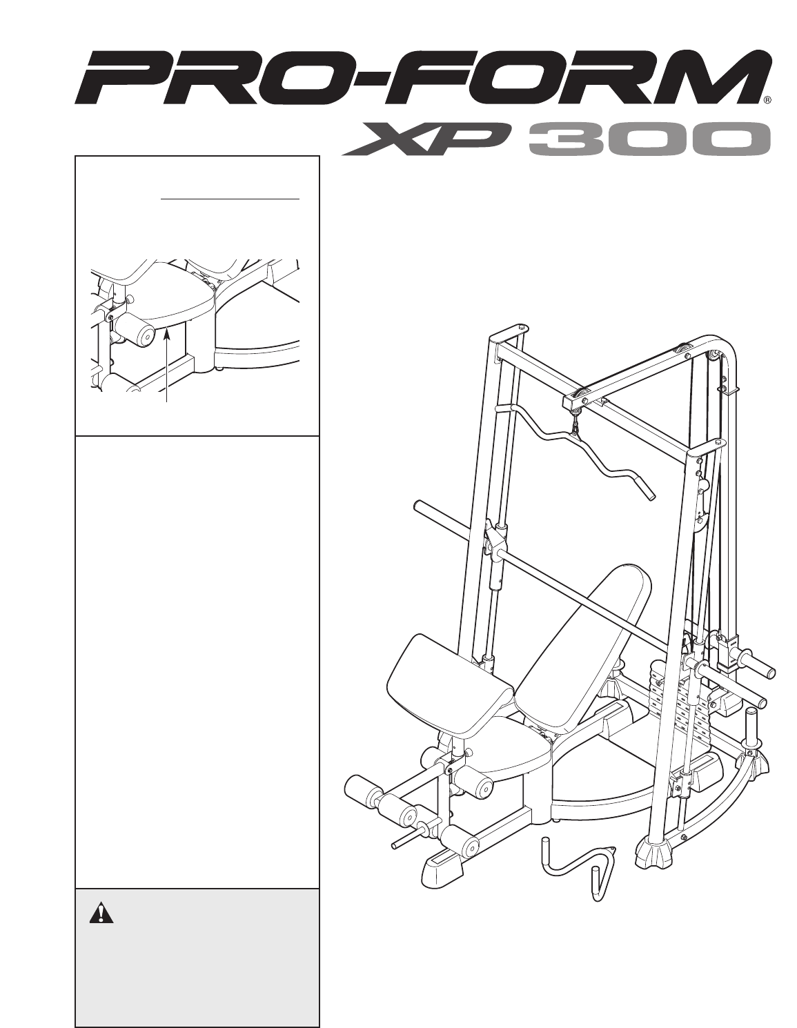 BEFORE YOU BEGIN Thank you for selecting the versatile PROFORM® XP 300 weight bench. The weight bench is designed to help develop every major muscle group of the body. Whether your goal is to tone your body, build dramatic muscle size and strength, or improve your cardiovascular system, the weight bench will help you to achieve the specific results you want. warranty card accompanying this manual. To help us assist you, please note the product model number and serial number before calling.