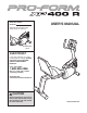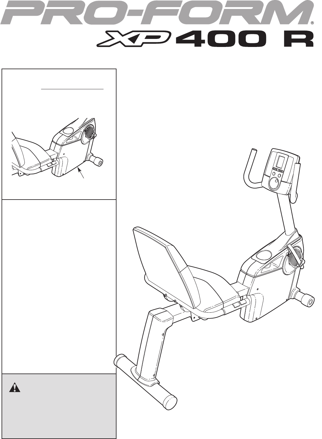 BEFORE YOU BEGIN Thank you for selecting the revolutionary PROFORM® XP 400 R exercise cycle. Cycling is an effective exercise for increasing cardiovascular fitness, building endurance, and toning the body. The XP 400 R exercise cycle provides an impressive selection of features designed to make your workouts at home more effective and enjoyable. after reading this manual, please see the front cover of this manual. To help us assist you, note the product model number and serial number before contacting us.