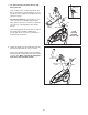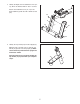 13. Plug the Pulse Wire (38) into the Pulse Receptacle (39) in the Frame (1). 13 38 39 14. Identify the Right Pedal (44), which is marked with an “R.” Using an adjustable wrench, firmly tighten the Right Pedal clockwise into the right side of the Crank (17). 1 14 Tighten the Left Pedal (not shown) counterclockwise into the left side of the Crank. Adjust the strap on the Right Pedal (44) to the desired position, and press the ends of the straps onto the tabs on the Right Pedal.