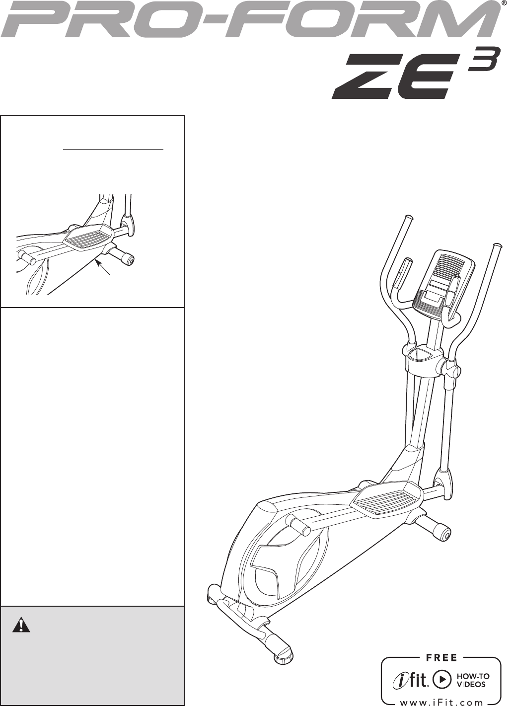 BEFORE YOU BEGIN Thank you for purchasing the PROFORM® ZE 3 elliptical. The ZE 3 elliptical provides an array of features designed to make your workouts at home more effective and enjoyable. manual. To help us assist you, note the product model number and serial number before contacting us. The model number and the location of the serial number decal are shown on the front cover of this manual. For your benefit, read this manual carefully before you use the elliptical.