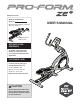 BEFORE YOU BEGIN Thank you for selecting the revolutionary PROFORM® ZE 6 elliptical. The ZE 6 elliptical provides an impressive selection of features designed to make your workouts at home more effective and enjoyable. manual. To help us assist you, note the product model number and serial number before contacting us. The model number and the location of the serial number decal are shown on the front cover of this manual. For your benefit, read this manual carefully before you use the elliptical.