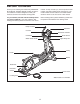 HOW TO EXERCISE ON THE ELLIPTICAL To mount the elliptical, hold the upper body arms or the handlebars and step onto the pedal that is in the lowest position. Next, step onto the other pedal. Push the pedals until they begin to move with a continuous motion. Upper Body Arms Handlebars Note: The pedal discs can turn in either direction. It is recommended that you turn the pedal discs in the direction shown by the arrow; however, for variety you can turn the pedal discs in the opposite direction.