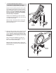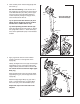 12. See the upper drawing. See HOW TO PLUG IN THE POWER CORD on page 12 and plug in the Power Cord (133). Next, make sure that the Reset/Off Switch (37) is in the “on” position. 12 37 See the lower drawing. Press the Quick Power Ramp 10º button on the Console (not shown). The Ramp (4) will then move downward to the lowest incline level. 133 Attach the Upright (6) to the Frame (1) with four 5/16" x 1" Patch Screws (81) and four 5/16" Split Washers (105). 81 105 6 4 1 105 81 13.