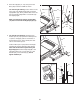 13. Lower the Uprights (77, 78) as shown. See the inset drawing. Position the Uprights (77, 78) so that the Frame (55) is centered between the Uprights. 13 Firmly tighten the 3/8" x 2 1/2" Bolt (1) and then tighten the 3/8" x 2 1/4" Bolts (8) on each side of the treadmill. Do not overtighten the 3/8" x 2 1/2" Bolts. 55 View from Above 55 14 21 Press the indicated Grommet (21) into the Right Upright (78). Raise the Right Upright (78) and the Left Upright (not shown).