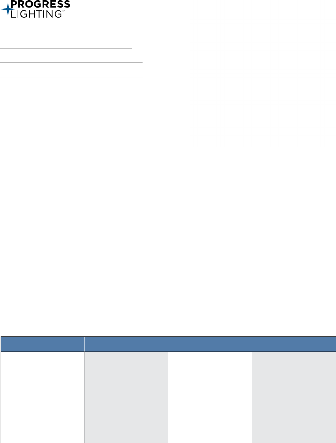701 Millennium Blvd. Greenville, South Carolina 29607 www.progresslighting.com