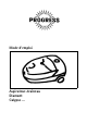 mes peuvent être la source de dangers importants pour l’utilisateur. • En cas de panne, adressez-vous à votre revendeur ou directement au Centre Service agréé PROGRESS. Montage de votre aspirateur Les accessoires peuvent être emboîtés par pression et rotation et démontés par rotation dans le sens inverse. Assembler le flexible d’aspiration et le tube d’aspiration. Assembler solidement la poignée du flexible et le tube.