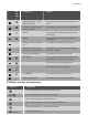 Progress Rādījums Apraksts Bloķēšana /Cepeškrāsns bērnu drošības funkcija darbojas. Nepareizi vai pārāk mazi ēdiena gatavošanas trauki, vai arī uz gatavoša‐ nas zonas nav ēdiena gatavošanas trauku. Automātiskā izslēgšanās darbojas. OptiHeat Control (trīs darbību atlikušā siltuma indikators) BRĪDINĀJUMS! / / Pastāv risks gūt apdegumus atlikušā siltuma dēļ. Indikators parāda pašreiz izmantoto gatavošanas zonu atlikušā siltuma pakāpi.