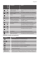Progress Rādījums Apraksts Nepareizi vai pārāk mazi ēdiena gatavošanas trauki, vai arī uz gatavoša‐ nas zonas nav ēdiena gatavošanas trauku. Automātiskā izslēgšanās darbojas. OptiHeat Control (trīs darbību atlikušā siltuma indikators) BRĪDINĀJUMS! / / Pastāv risks gūt apdegumus atlikušā siltuma dēļ. Indikators parāda pašreiz izmantoto gatavošanas zonu atlikušā siltuma pakāpi. Indikators var iedegties arī blakus esošām zonām, kaut tās tobrīd netiek izmantotas.