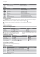 progress Touchkontroll Funktion Minska inställningar Minskar värmeläge/tid Display Display Beskrivning Kokzon är avstängd Värmelägen Värmeläge är inställt Fel Felfunktion föreligger Restvärme Kokzon är fortfarande varm Barnlås Funktionslås/Barnlås är aktiverat Säkerhetsavstängning Säkerhetsavstängning är aktiverad. Restvärmeindikator Varning Risk för brännskador på grund av restvärme. När kokzonerna har stängts av behöver de lite tid för att kallna. Titta på restvärmeindikatorn .