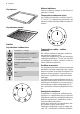 progress Cepešpanna Strāvas indikators Strāvas indikators iedegas, ja tiek lietota cepeškrāsns vadība. Temperatūras pārbaudes ierīce Lai izvēlētos temperatūru robežās starp 50 °C un 250 °C, pagrieziet temperatūras vadības ierīci pretēji pulksteņrādītāju kustības virzienam. Cepeškrāsns plaukts Darbība Cepeškrāsns vadības ierīce Cepeškrāsns ir izslēgta.