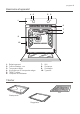progress 5 Beskrivelse af apparatet 4 3 2 5 1 6 7 8 9 10 1. 2. 3. 4. 5. 6. Betjeningspanel Funktionsvælger, ovn Temperaturvælger Kontrollampe for temperaturvælger TÆNDT-lampe Luftspalte til køleblæser 7. 8. 9. 10.