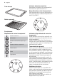 progress Cuptorul are patru nivele de rafturi. 4 3 2 1 Poziţiile raftului sunt numărate de la podeaua cuptorului în sus, aşa cum se indică în figură. Componentele glisante trebuie introduse întotdeauna corespunzător (vedeţi figura). Nu aşezaţi vasele direct pe baza cuptorului. Aer fierbinte Alimentele sunt gătite prin intermediul forţei aerului preîncălzit suflat uniform în interiorul cuptorului de un set ventilator aşezat pe peretele spate al cuptorului.