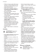 Progress Jelo Množství Komada (g) Hambur‐ gery 6 600 Riblji filet 4 Tost sendviči Tost Temper‐ atura (°C) Vrijeme (min) Položaj rešetke 1. strana 2. strana 250 20 - 30 - 3 400 250 12 - 14 10 - 12 3 4-6 - 250 5-7 - 3 4-6 - 250 2-4 2-3 3 ČIŠĆENJE I ODRŽAVANJE UPOZORENJE! Pogledajte poglavlja sa sigurnosnim uputama. Napomene o čišćenju • Prednju stranu pećnice očistite mekom krpom namočenom u mlaku vodu sa sredstvom za čišćenje.