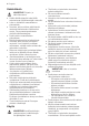 Progress 3 Yleiset turvallisuusohjeet • • • • • • • • • Asennuksen ja johdon vaihtamisen saa suorittaa vain ammattitaitoinen henkilö. VAROITUS: Laite ja näkyvissä olevat osat kuumenevat käytön aikana. Varo koskettamasta uunin lämmitysvastuksia. Alle 8-vuotiaat lapset tulee pitää kaukana laitteesta, ellei heitä valvota jatkuvasti. Käytä aina uunikintaita, kun käsittelet lisävarusteita tai uunivuokia. Irrota pistoke pistorasiasta ennen kuin aloitat huoltotoimenpiteet.