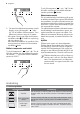 progress och symbolen och indikeringen Pyro blinkar i displayen samtidigt som en signal hörs Montering av ugnsstegar Montering av ugnsstege: Haka först fast den baktill, positionera den sedan framtill och tryck in den på plats. Rengör stegarna genom att blötlägga dem i varmt vatten med handdiskmedel. Tag bort svåra fläckar med en svamp och varmt vatten med handdiskmedel. Skölj noga och torka torrt med en mjuk duk. Aktivera funktionen pyrolytisk rengöring: 1. Tryck på knappen för att sätta på ugnen.