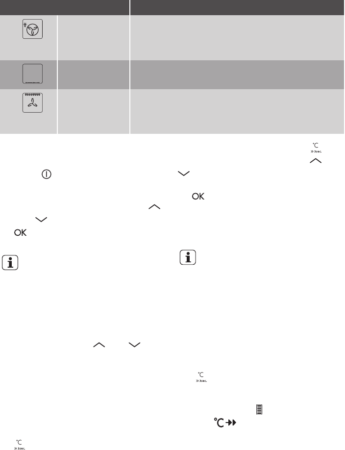 Ekran ayarlanan sıcaklığı, sembolü ve fırın