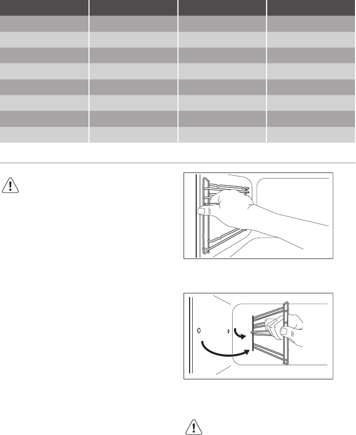 Yemek Sıcaklık (°C) Süre (sa.) Raf konumu