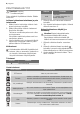 progress 11 Kiertoilmagrilli Varoitus! Tämän toiminnon maksimilämpötila on 200°C. Määrä Grillaus RUOKALAJI Kpl g Liharullat (kalkkuna) 1 1000 Broileri (puolikkaat) 2 Broilerin koivet 6 Viiriäinen Paistoaika, minuuttia Lämpötila (°C) 1. puoli 2.