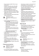 Progress 5 • Ärge kasutage seadet tööpinna ega hoiukohana. • Seadme ust avades olge ettevaatlik. Alkoholi sisaldavate komponentide kasutamise tagajärjel võib alkohol õhuga seguneda. • Kui avate ukse, vältige seadme läheduses sädemeid või lahtist leeki. • Ärge pange süttivaid või süttiva ainega määrdunud esemeid seadmesse, selle lähedusse või peale. • Ärge kasutage ahju eelkuumutamiseks mikrolainefunktsiooni.