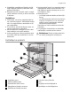 progress 5 Ierīces lietošana Skatiet tālāk minētos katras darbības norādījumus: 1. Pārbaudiet, vai ūdens mīkstinātāja līmenis atbilst ūdens cietības pakāpei vietā, kurā ir uzstādīta ierīce. Ja nepieciešams, iestatiet ūdens mīkstinātāju. 2. Piepildiet specializētās sāls nodalījumu ar trauku mazgājamai mašīnai paredzētu sāli. 3. Piepildiet skalošanas līdzekļa dozatoru ar skalošanas līdzekli. 4. Ievietojiet trauku mazgājamā mašīnā galda piederumus un traukus. 5.