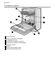 progress Описание на уреда 1 2 3 4 5 6 7 8 9 Горна кошница Скала за твърдост на водата Резервоар за солта Отделение за миялен препарат Дозатор за препарат за изплакване Табелка с данни Филтри Долно разпръскващо рамо Горно разпръскващо рамо